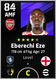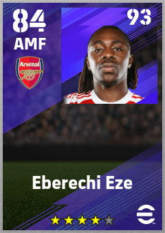 . Eberechi Eze is a Attacking Midfielder footballer from England who plays for Arsenal Fc in eFootball 2026.