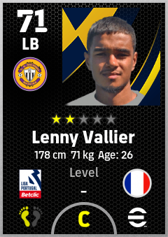 . Lenny Vallier is a Left Back footballer from France who plays for Cd Nacional in eFootball 2026.