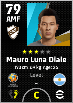 . Mauro Luna Diale is a Attacking Midfielder footballer from Argentina who plays for Vicente López M in eFootball 2026.