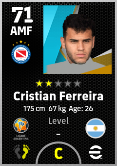 . Cristian Ferreira is a Attacking Midfielder footballer from Argentina who plays for La Paternal Rb in eFootball 2026.