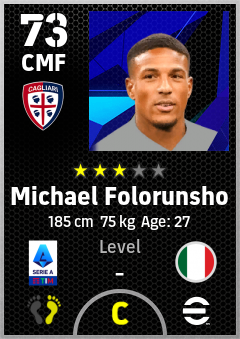 . Michael Folorunsho is a Center Midfielder footballer from Italy who plays for Cagliari Rb in eFootball 2026.