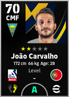 . João Carvalho is a Center Midfielder footballer from Portugal who plays for Gd Estoril Praia in eFootball 2026.