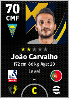 . João Carvalho is a Center Midfielder footballer from Portugal who plays for Gd Estoril Praia in eFootball 2026.