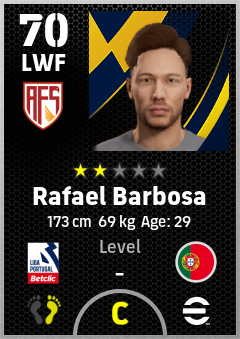 . Rafael Barbosa is a Left Wing Forward footballer from Portugal who plays for Avs Futebol in eFootball 2026.