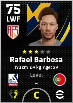 . Rafael Barbosa is a Left Wing Forward footballer from Portugal who plays for Avs Futebol in eFootball 2026.