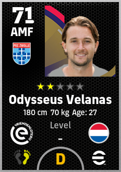 . Odysseus Velanas is a Attacking Midfielder footballer from Netherlands who plays for Pec Zwolle in eFootball 2026.