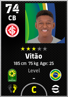 . Vitão is a Center Back footballer from Brazil who plays for Sc Internacional in eFootball 2026.