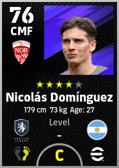 . Nicolás Domínguez is a Center Midfielder footballer from Argentina who plays for Nottingham Rw in eFootball 2026.
