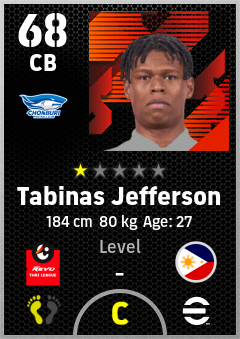 . Tabinas Jefferson is a Center Back footballer from Philippines who plays for Chonburi Fc in eFootball 2026.