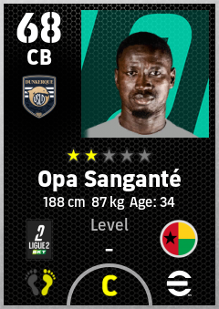 . Opa Sanganté is a Center Back footballer from Guinea-Bissau who plays for Usl Dunkerque in eFootball 2026.