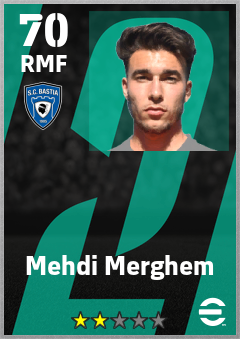 . Mehdi Merghem is a Right Midfielder footballer from Algeria who plays for Sc Bastia in eFootball 2026.