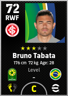 . Bruno Tabata is a Right Wing Forward footballer from Brazil who plays for Sc Internacional in eFootball 2026.