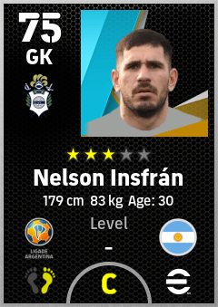 . Nelson Insfrán is a Goalkeeper footballer from Argentina who plays for La Plata Ab in eFootball 2026.