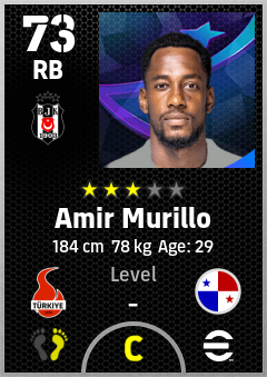 . Amir Murillo is a Right Back footballer from Panama who plays for Beşiktaş Jk in eFootball 2026.