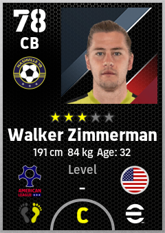 . Walker Zimmerman is a Center Back footballer from United States who plays for Nashville Yb in eFootball 2026.