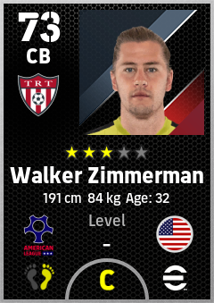 . Walker Zimmerman is a Center Back footballer from United States who plays for Toronto Rw in eFootball 2026.