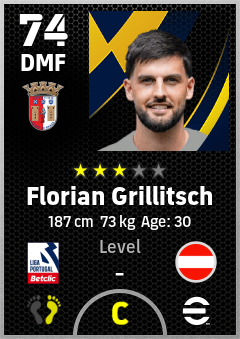 . Florian Grillitsch is a Defensive Midfielder footballer from Austria who plays for Sporting Braga in eFootball 2026.