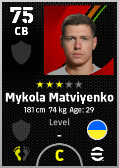 . Mykola Matviyenko is a Center Back footballer from Ukraine who plays for Free in eFootball 2026.