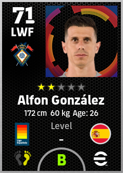 . Alfon González is a Left Wing Forward footballer from Spain who plays for Villarreal A in eFootball 2026.