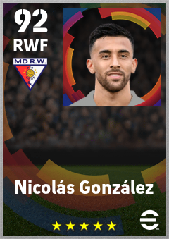 .Nicolás González is a Right Wing Forward footballer from Argentina who plays for Madrid Rosas Rb in eFootball 2026.