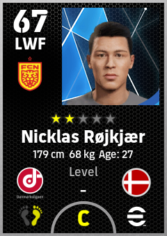 . Nicklas Røjkjær is a Left Wing Forward footballer from Denmark who plays for Nordsjælland Rg in eFootball 2026.
