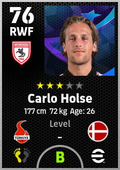 . Carlo Holse is a Right Wing Forward footballer from Denmark who plays for Samsunspor in eFootball 2026.