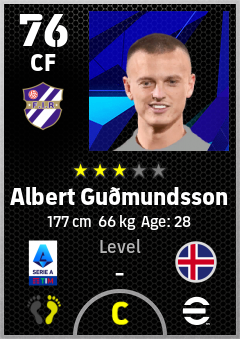 . Albert Guðmundsson is a Center Forward footballer from Iceland who plays for Firenze V in eFootball 2026.