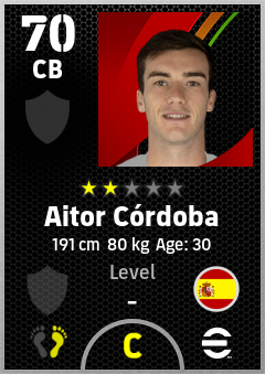 . Aitor Córdoba is a Center Back footballer from Spain who plays for Free in eFootball 2026.