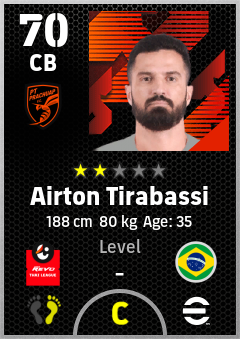. Airton Tirabassi is a Center Back footballer from Brazil who plays for Pt Prachuap Fc in eFootball 2026.