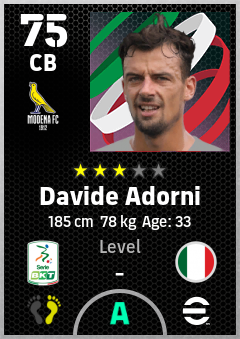 . Davide Adorni is a Center Back footballer from Italy who plays for Modena Gb in eFootball 2026.