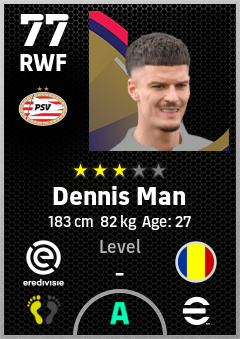 . Dennis Man is a Right Wing Forward footballer from Romania who plays for Psv in eFootball 2026.