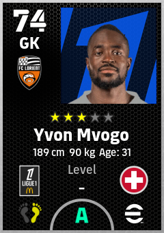 . Yvon Mvogo is a Goalkeeper footballer from Switzerland who plays for Fc Lorient in eFootball 2026.