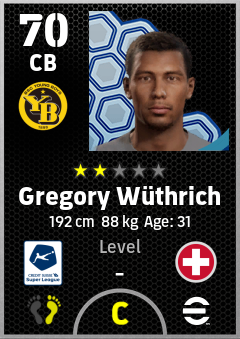. Gregory Wüthrich is a Center Back footballer from Switzerland who plays for Bern Gs in eFootball 2026.