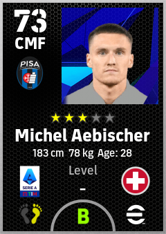 . Michel Aebischer is a Center Midfielder footballer from Switzerland who plays for Pisa Sporting Club in eFootball 2026.