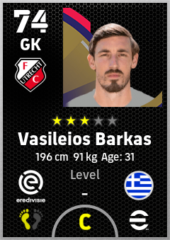 . Vasileios Barkas is a Goalkeeper footballer from Greece who plays for Fc Utrecht in eFootball 2026.