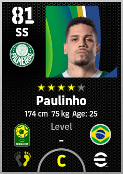 . Paulinho is a Second Striker footballer from Brazil who plays for Se Palmeiras in eFootball 2026.