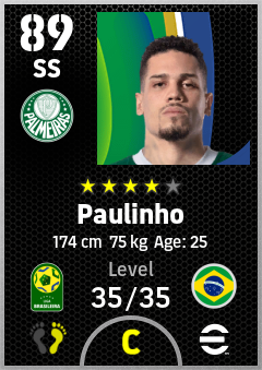 .Paulinho is a Second Striker footballer from Brazil who plays for Se Palmeiras in eFootball 2026.