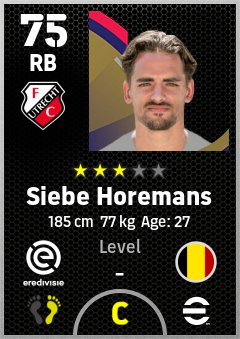 . Siebe Horemans is a Right Back footballer from Belgium who plays for Fc Utrecht in eFootball 2026.