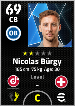 . Nicolas Bürgy is a Center Back footballer from Switzerland who plays for Odense Hb in eFootball 2026.