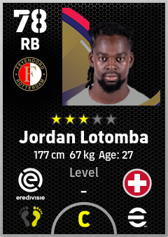 . Jordan Lotomba is a Right Back footballer from Switzerland who plays for Feyenoord in eFootball 2026.