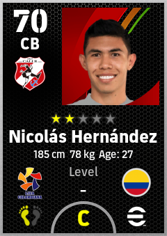 . Nicolás Hernández is a Center Back footballer from Colombia who plays for Cali R in eFootball 2026.