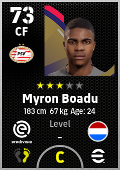 . Myron Boadu is a Center Forward footballer from Netherlands who plays for Psv in eFootball 2026.