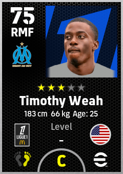 . Timothy Weah is a Right Midfielder footballer from United States who plays for Olympique De Marseille in eFootball 2026.