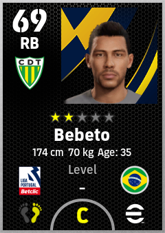 . Bebeto is a Right Back footballer from Brazil who plays for Cd Tondela in eFootball 2026.