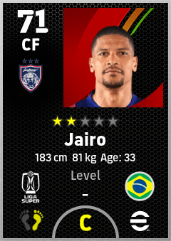 . Jairo is a Center Forward footballer from Brazil who plays for Johor Darul Ta'zim Fc in eFootball 2026.