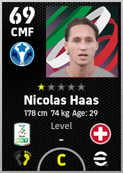. Nicolas Haas is a Center Midfielder footballer from Switzerland who plays for Empoli A in eFootball 2026.