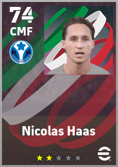 . Nicolas Haas is a Center Midfielder footballer from Switzerland who plays for Empoli A in eFootball 2026.