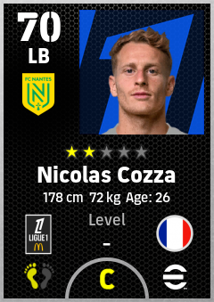 . Nicolas Cozza is a Left Back footballer from France who plays for Fc Nantes in eFootball 2026.