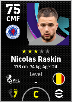 . Nicolas Raskin is a Center Midfielder footballer from Belgium who plays for Rangers Fc in eFootball 2026.