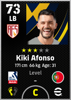 . Kiki Afonso is a Left Back footballer from Portugal who plays for Avs Futebol in eFootball 2026.